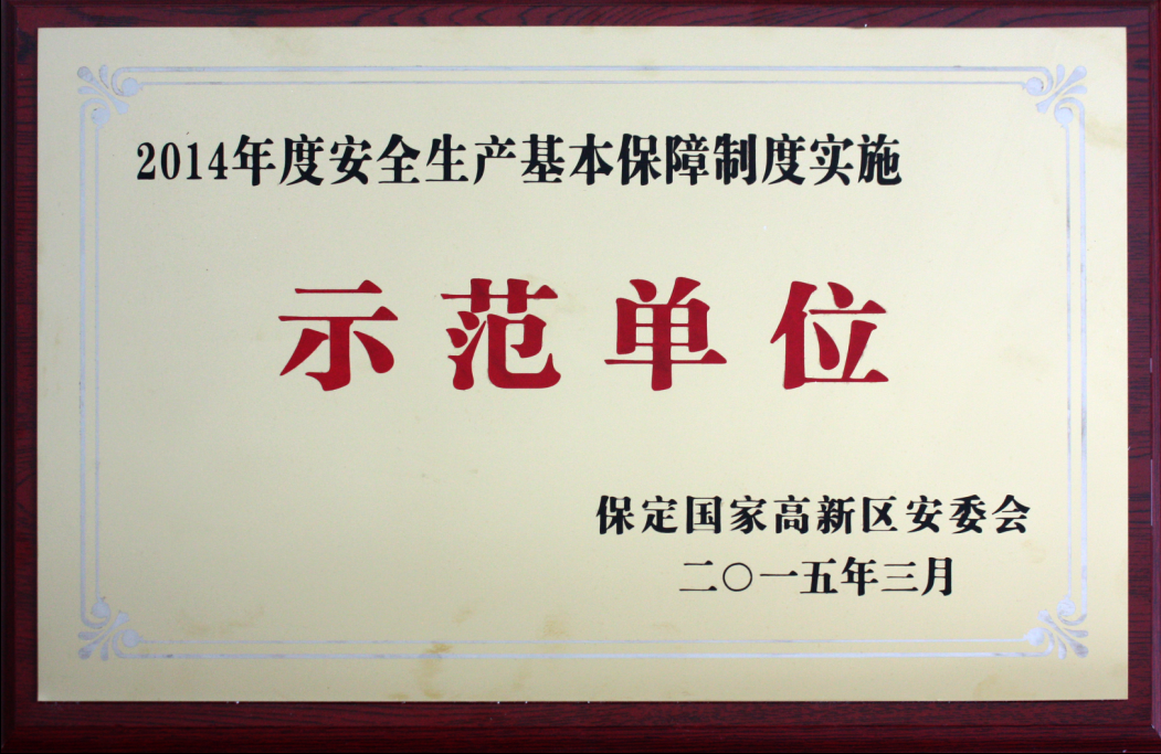 2015年3月我公司獲得2014年度安全生產(chǎn)基本保障制度實(shí)施示范單位稱號