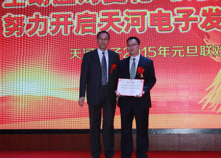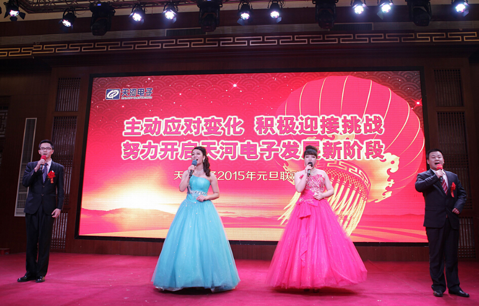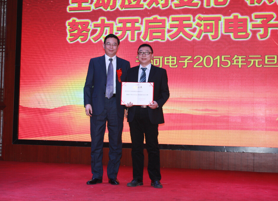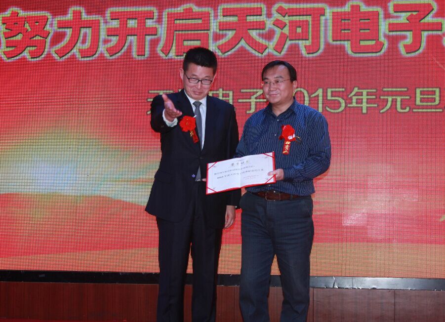 2014年12月31日下午4時整,天河電子2015年元旦晚會在星光大酒店二樓場鑫軒隆重舉行,大會表彰了2015年度在市場、研發(fā)、工程等領域作出突出貢獻的優(yōu)秀團隊和個人。公司總經(jīng)理苗立在會上做了重要講話,總結了2014年我們所做出的成績和不足,分析了公司目前所處的內外形勢,并為公司2015年的工作指明了方向。
