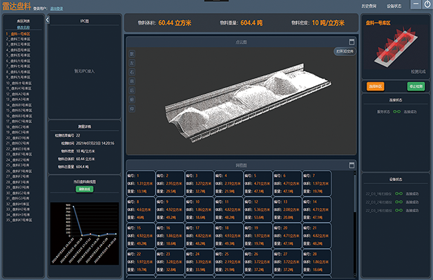 通過激光檢測器對料場進(jìn)行掃描,通過算法快速計算出物料體積。